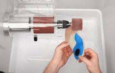 Une fois le module terminé il va être formé à votre pied. Sur des coussins empreinteurs nous prenons l’empreinte de votre pied en relief et en position corrigée. Cette forme est alors donnée à la semelle qui a été chauffée pour être moulée.